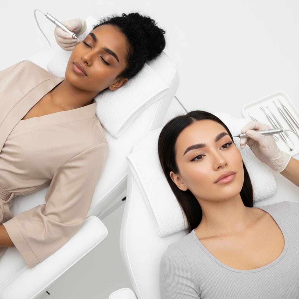 Ombre Brows are a semi-permanent brow technique that creates a soft, powdered makeup look — lighter at the front and deeper toward the tail.
